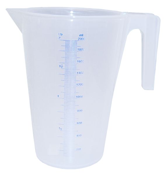 Öl- und säurebeständig. Lebensmittelecht mit Maßeinteilung. Skala eingefärbt und erhaben. Bruchsicher und standfest. Ergonomischer Handgriff. Stapelbar, sicheres Ausgießen. Farbe Behälter: transparent.